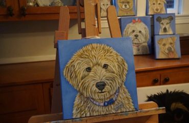 My two biggest passions are painting and dogs so I found a way to enjoy both. Painting portraits of dogs makes me very happy, and seeing the dog owner’s reactions to the paintings makes